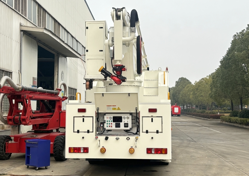 案例:某30層寫字樓火災(zāi)中,該車通過25米臂架直達(dá)起火樓層,配合遙控水炮快速壓制火勢(shì),避免人員傷亡。