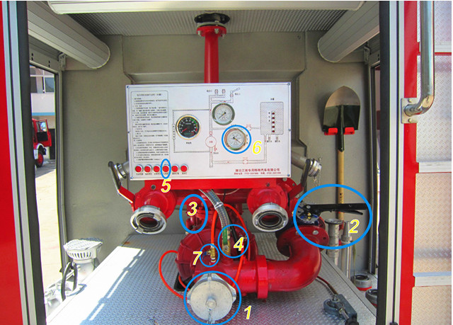打開車輛總電源→打開儀表板電源按鈕→打開車輛取力器→打開吸水口接吸水管→打開真空泵開關(吸水口上面)→打開引水控制按鈕→打開后注水按鈕→車輛給油(真空表達到0.04MPa)→關閉引水控制→關閉真空泵開關→觀看液位表→吸水完成